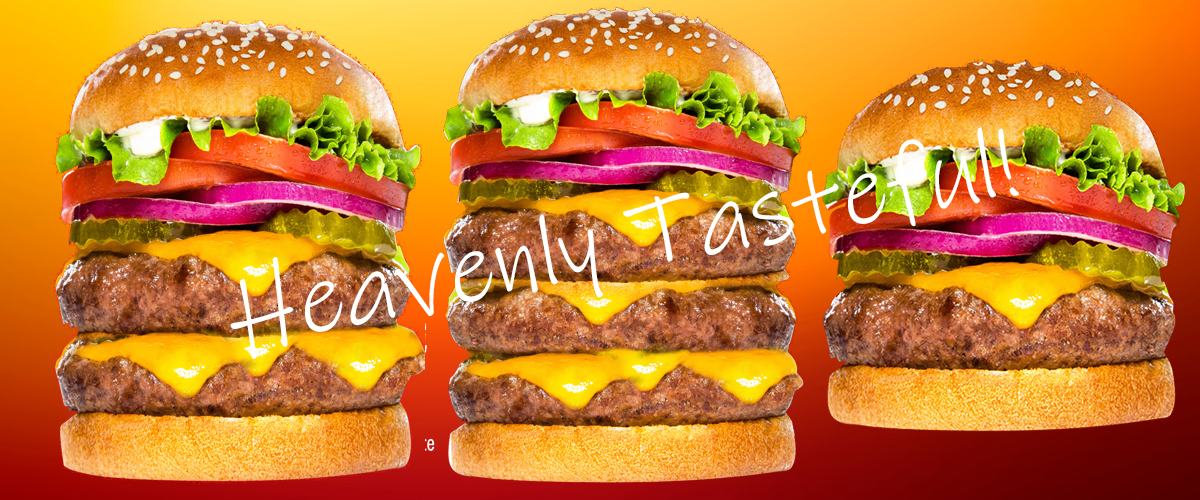 Two 6Oz. Beef Patty, 2 Cheddar Cheese, Lettuce, Tomatoes, Onions, Pickles and Heaven Sauce